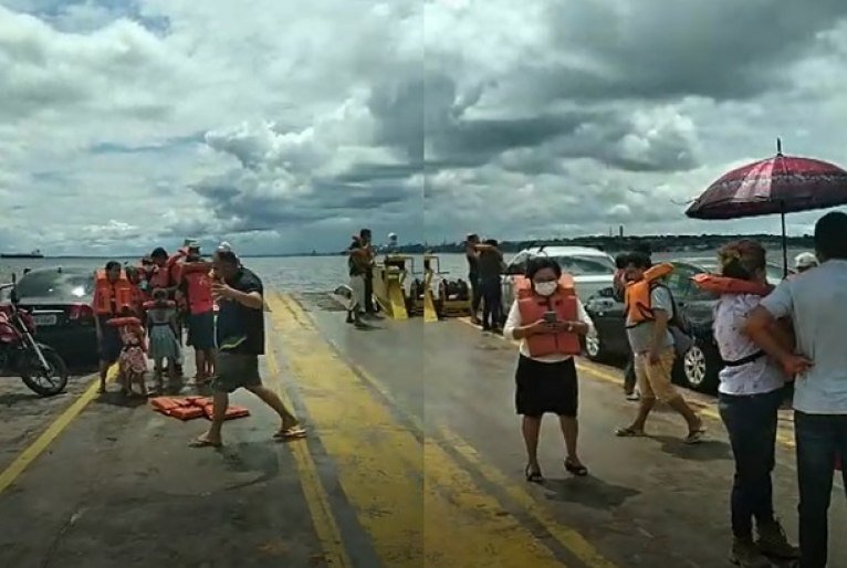 Quando o empurrador afundou, os passageiros da balsa ficaram aflitos com a situação. Muitos gravaram vídeos pedindo ajuda.