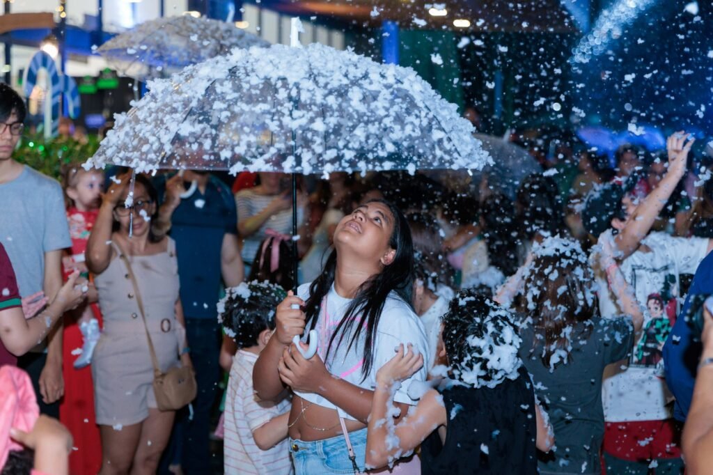 O evento contou com apresentação musical da cantora Márcia Siqueira, encenação teatral, projeções visuais, chegada do Papai Noel, show de fogos e efeito de neve, marcando um dos principais momentos da programação natalina do Pátio Gourmet em 2025.