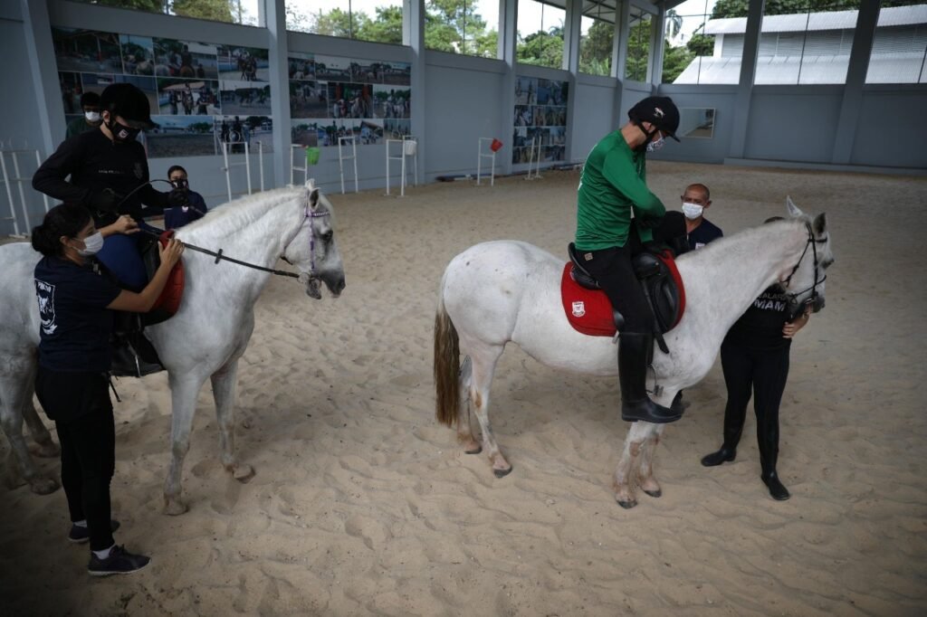 O Núcleo de Equoterapia do Regimento de Policiamento Montado – Coronel Bentes (RPMon), da Polícia Militar do Amazonas (PMAM), reabilitou, neste ano, 77 crianças com deficiência, usando o método terapêutico e educacional com cavalos. O major Bruno Pereira, coordenador do Núcleo, explicou que, devido à pandemia de Covid-19, os atendimentos precisaram passar por alguns ajustes.