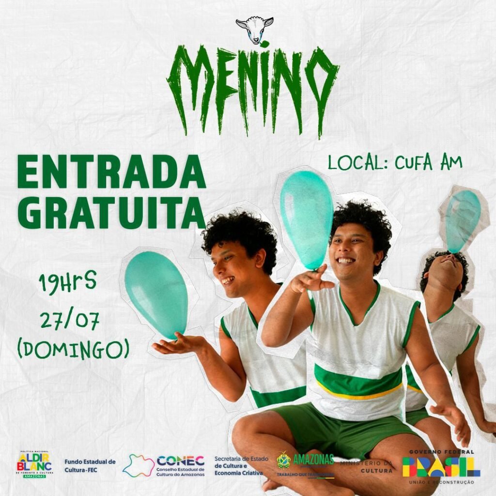Com uma linguagem poética e profundamente autobiográfica, o espetáculo solo Menino, idealizado e interpretado por Paulo Martins, estreia no dia 27 de julho (domingo), às 19h, na sede da CUFA Amazonas, no Centro de Manaus. A apresentação é gratuita e aberta ao público geral.