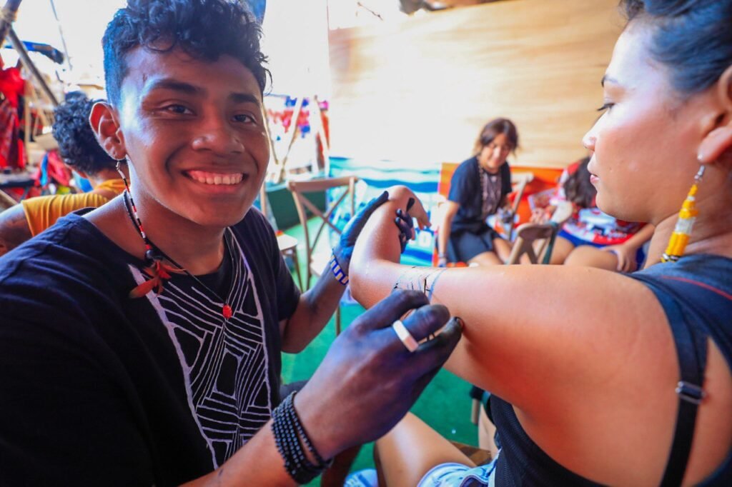 Original da etnia Sateré-Mawé, Adolfo Tapaiüna, também ocupa um dos 11 estandes da Estação da Cultura. O artista e ilustrador digital compartilha a tradição dos povos indígenas com a técnica do grafismo corporal, a partir da tinta de jenipapo.