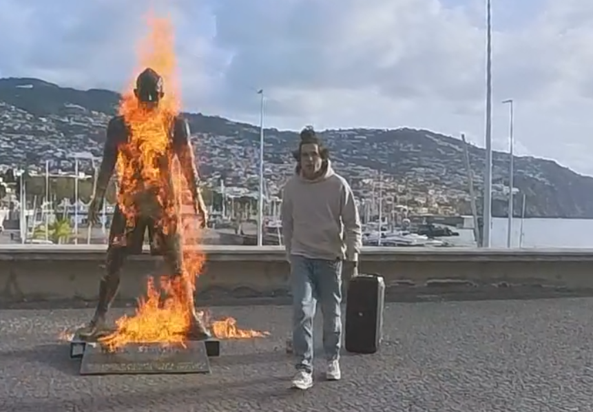 A estátua de Cristiano Ronaldo instalada na área externa do Museu CR7, em Funchal, na Ilha da Madeira, foi incendiada em um ato de vandalismo registrado em vídeo e divulgado nas redes sociais.