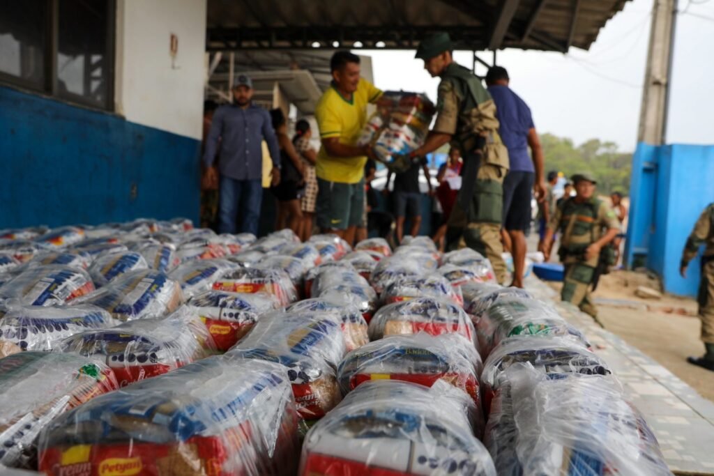 As 300 famílias das comunidades Jesus me Deu, Santa Luzia, Ipiranga, São Luiz e São Sebastião 2 receberam mantimentos como cestas básicas, kits de higiene e água potável.