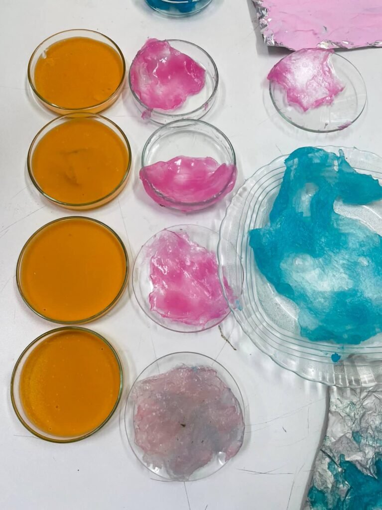 “Uma oficina de produção do plástico biodegradável a partir do amido de mandioca foi realizada com a participação dos alunos. Nesta oficina, foi possível demonstrar a capacidade de produzir um biofilme que pode ser utilizado como alternativa ao plástico comum. Além disso, durante a atividade, foi possível comentar sobre importância do uso e descarte consciente de materiais plásticos, a fim de contribuir com a preservação ambiental”, destacou a professora.
