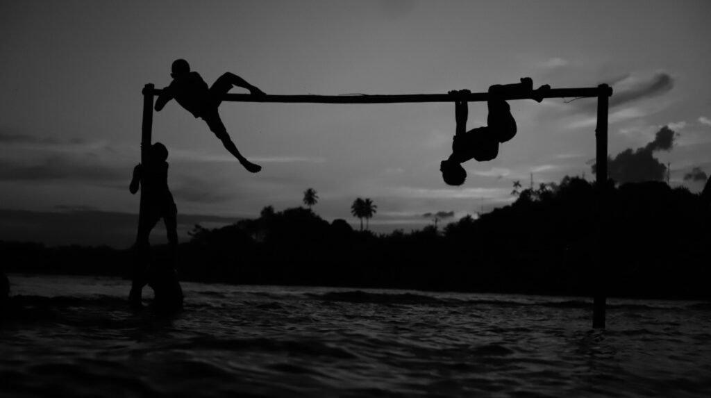 Desana revela que um dos maiores desafios ao realizar esse trabalho foi capturar a essência do momento sem interromper a espontaneidade das crianças. “O desafio é sempre que eles não percebam, para que elas fiquem à vontade, brincando, correndo, rindo, se divertindo”, comenta o fotógrafo. Esse esforço de invisibilidade busca preservar a naturalidade das interações, permitindo que a intimidade e a conexão com o rio se revelem de forma autêntica nas fotografias.
