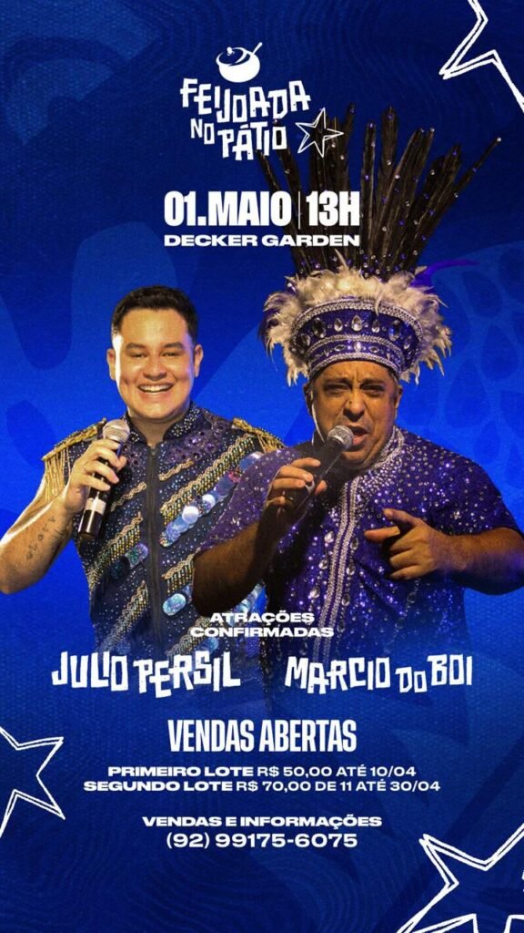 Com estrutura ampliada, palco, sistema de som e organização voltada à experiência do público, a Feijoada no Pátio chega à sétima edição como uma festa voltada aos torcedores do boi Caprichoso, com foco na valorização das toadas e da cultura popular amazônica.