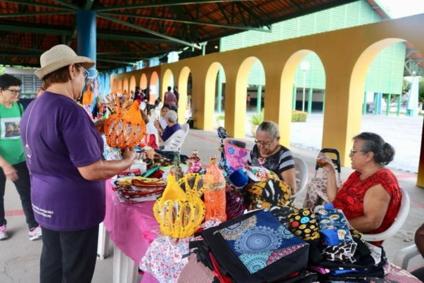 Realizada há 20 anos, a feira de artesanato é uma maneira de expor o trabalho das alunas, comercializar os produtos e mostrar para a pessoa idosa, que nunca é tarde para aprender alguma atividade, seja para passatempo ou até uma profissão.