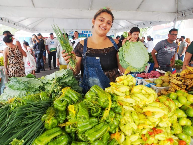 Produtos: Cheiro verde, couve, alface, pimentão, batata doce, limão e frutas regionais