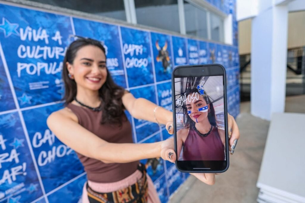 Para ter acesso e fazer uso dos filtros, basta buscar a palavra “Parintins 2024” na rede de filtros do Instagram ou acessar o instagram de Cultura do Am (@culturadoam) na aba de filtros da plataforma.