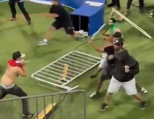 Logo após o apito final, torcedores do Independiente Medellín derrubaram grades e invadiram o gramado. A confusão se espalhou rapidamente, com confrontos entre torcidas dentro de campo e nas arquibancadas.