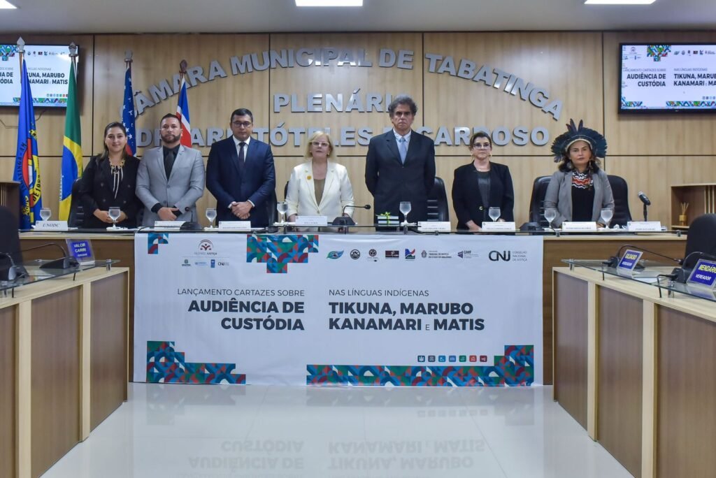 O governador do Amazonas, Wilson Lima, e a presidente do Supremo Tribunal Federal (STF) e do Conselho Nacional de Justiça (CNJ), ministra Rosa Weber, viajaram ao município de Tabatinga (1.108 km de Manaus) nesta segunda-feira (20), onde participaram na Câmara Municipal de Tabatinga do lançamento dos “Cartazes sobre audiência de custódia nas línguas indígenas Tikuna, Marubo, Kanamari e Matis.