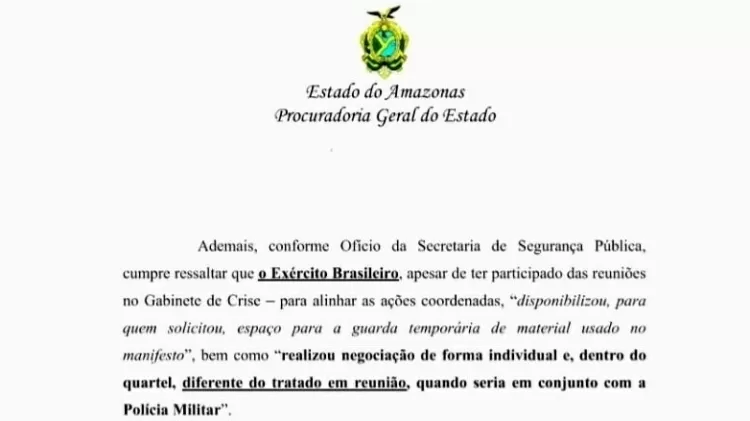 A PGR-AM reforça ainda ao Judiciário que “não houve qualquer auxílio das Forças Armadas à Polícia Militar para cumprimento da missão”.