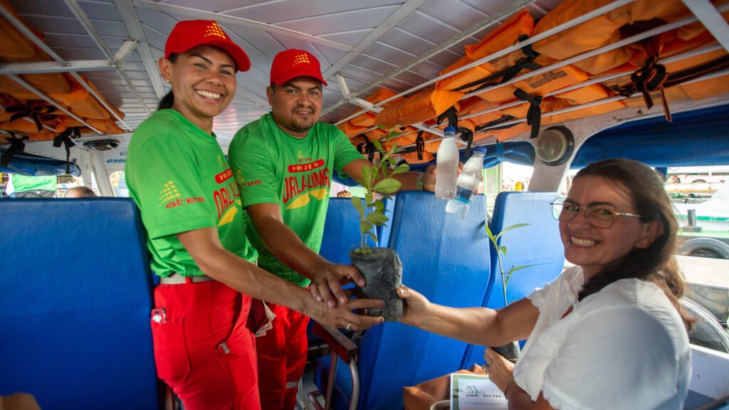O superintendente de Operações do Grupo Atem, Alexandre Nascimento, fez questão de participar da atividade. Ele conversou com as pessoas que aguardavam a balsa no Porto da Ceasa, entregou mudas de plantas e o kit de coleta seletiva de lixo.