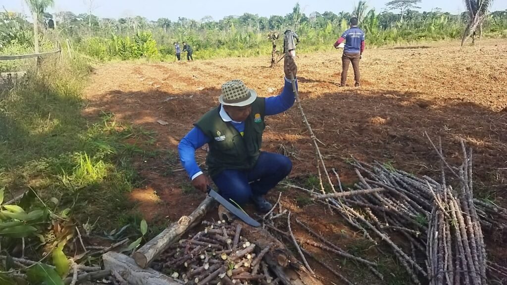 A iniciativa faz parte do Projeto Prioritário (PP) de Mandioca, que teve início no dia 11 de setembro. Após concluída, a expectativa é que a UD produza 9,6 mil mudas, que serão distribuídas aos agricultores familiares atendidos pela Unidade Local do Idam/Lábrea. O trabalho é realizado, também, com o apoio da Prefeitura Municipal de Lábrea, por meio da Secretaria de Produção, que forneceu o maquinário.