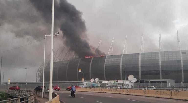 Um incêndio atingiu a área interna da Arena Castelão, em Fortaleza, na manhã deste sábado (30). O corpo de Bombeiros do Ceará confirmou a ocorrência e informou que duas guarnições trabalham no local para controlar o fogo. Ainda não se sabe os motivos do início das chamas e se há informação de feridos. Vídeos compartilhados nas redes sociais mostram uma forte fumaça preta no local.