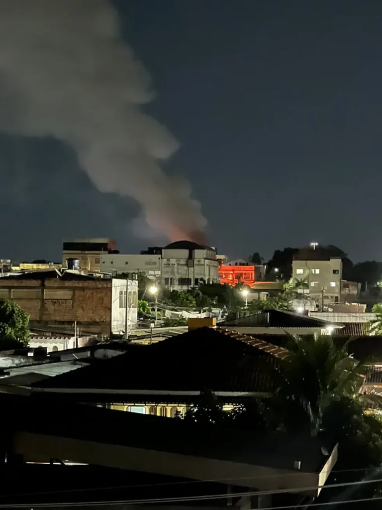 Um incêndio atingiu um bar na Rua do Comércio, bairro Parque Dez, Zona Centro-Sul de Manaus, na noite de quinta-feira (13). Não há registro de vítimas.