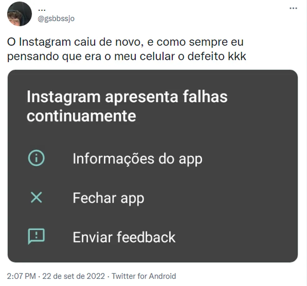 A rede social instagran, da empresa Meta, está apresentando instabilidade na tarde desta quinta-feira, de acordo com relatos de usuários nas redes sociais.