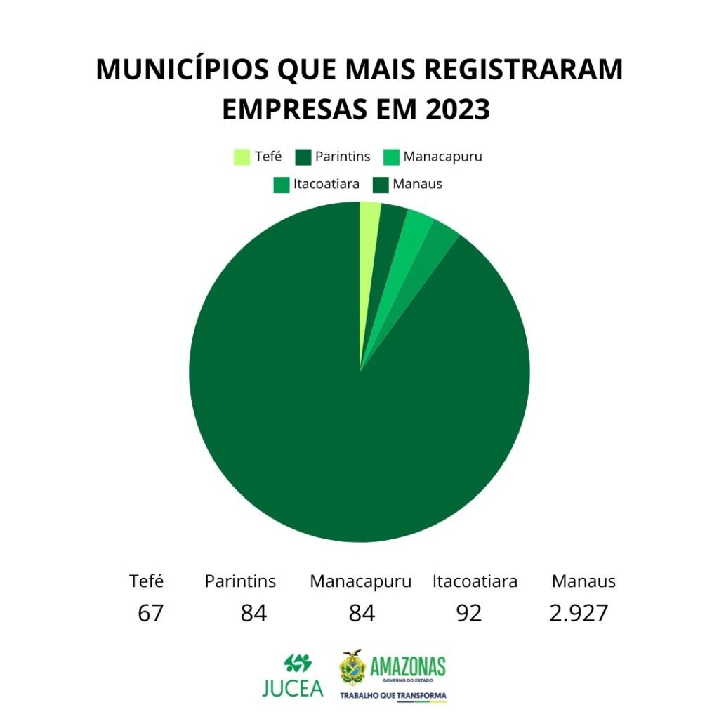 De acordo com o sistema do Portal de Serviços da Junta Comercial do Estado do Amazonas (Jucea), Manaus, seguida de Itacoatiara, Manacapuru, Parintins e Humaitá, constituíram de janeiro a junho de 2024, 3.478 novas empresas, alcançando um aumento de 6,88%, comparados ao mesmo período do ano anterior.