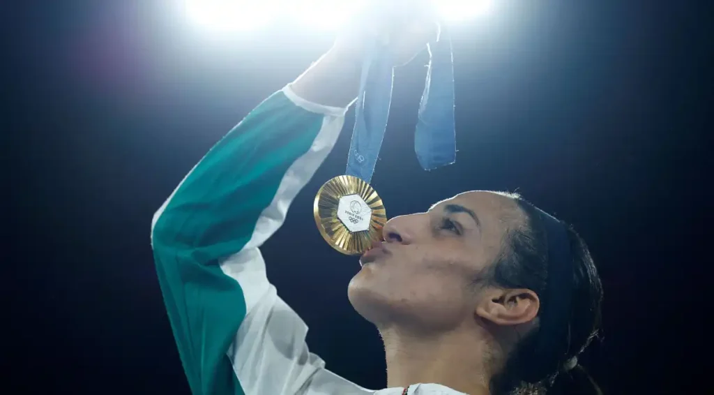 Khelif se tornou alvo de ataques online após sua primeira luta em Paris 2024. O confronto terminou antes do esperado. A adversária, a italiana Angela Carini, desistiu ainda nos primeiros segundos após sofrer um golpe no rosto. Mais tarde ela veio a explicar que tinha uma lesão no nariz e que o primeiro soco aumentou as dores, inviabilizando a sequência da luta.