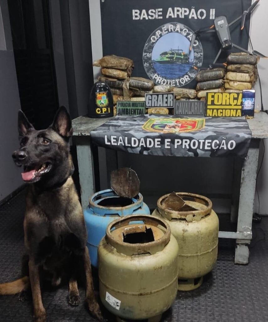 A ação contou com o apoio do cão policial Xerife, que identificou a presença da droga durante as buscas no convés. Ao todo, foram encontrados 30 tabletes de maconha do tipo skunk.