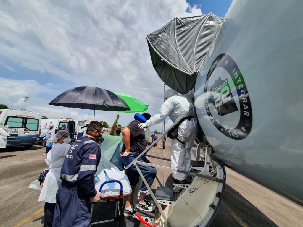 Na tarde de segunda-feira (1), um voo com 17 pacientes com Covid-19 saiu de Manaus/AM com destino a Porto Alegre/RS. Na noite também de segunda-feira, 18 pessoas em tratamento contra a Covid-19 foram levadas para Curitiba, no Paraná.