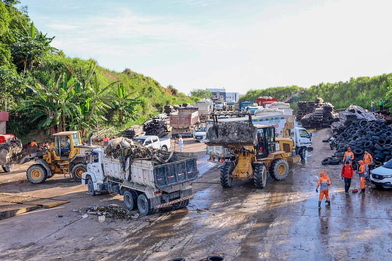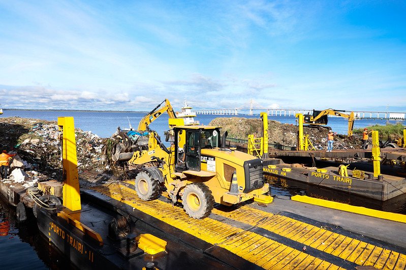 A Prefeitura de Manaus realizou, neste domingo (24), o transbordo de aproximadamente 600 toneladas de resíduos retirados dos rios e igarapés da cidade nos últimos 30 dias. O material recolhido da orla da cidade, pelas equipes da Secretaria Municipal de Limpeza Urbana (Semulsp), foi transportado do porto Trairi, no bairro Santo Antônio, zona Centro-Oeste, até o aterro sanitário municipal, localizado no quilômetro 19, da rodovia AM–010 (Manaus – Itacoatiara). O secretário da Semulsp, Altervi Moreira, junto com os subsecretários, Jairo Santos e José Rebouças, acompanhou todo o trabalho da equipe.