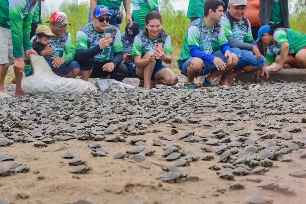 Moradores da comunidade São Sebastião do Corocoró, na área de Proteção Ambiental (APA) Nhamundá, realizaram a soltura de 65.332 filhotes de quelônios.