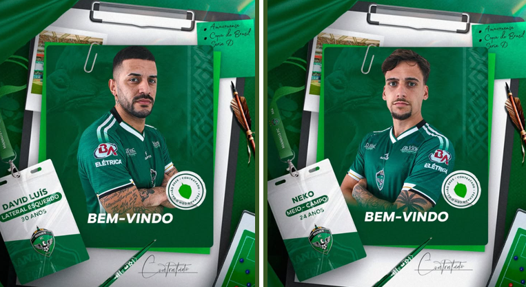 O Manaus confirmou mais duas contratações para a temporada 2026. O zagueiro David Luís, revelado pelo Grêmio, e o meia Neko, formado nas categorias de base do Internacional, passam a integrar o elenco que disputará o Campeonato Amazonense e a Série D do Brasileiro.