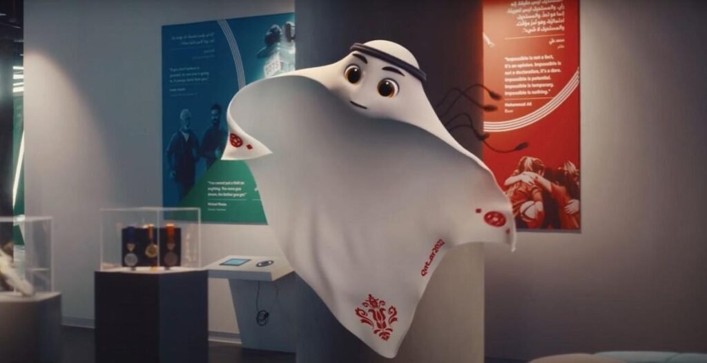 A FIFA revelou na sexta passada (1) o novo mascote oficial da Copa do Mundo de 2022. O mascote se chama La´eeb e tem como inspiração o tradicional lenço que os árabes usam na cabeça.
