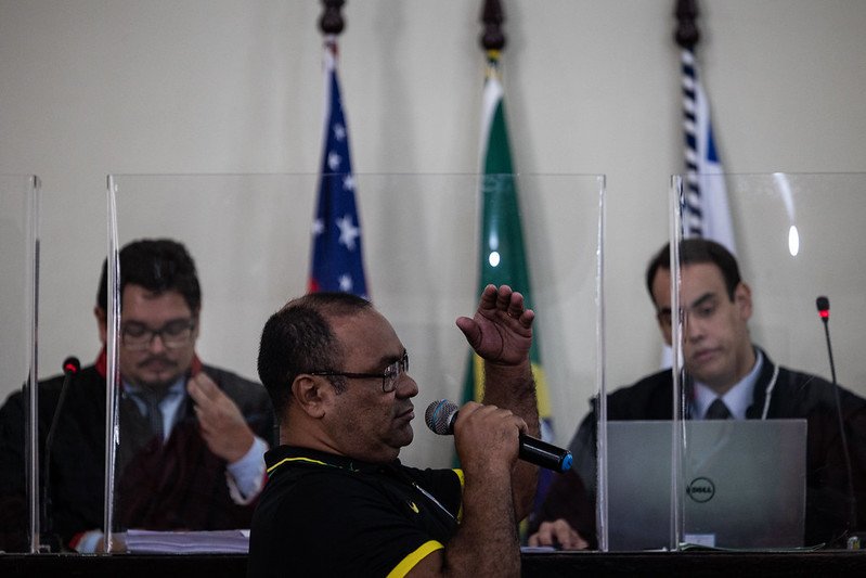 Gelson Carnaúba foi interrogado de 10h40 às 12h24. No início, ele começou falando que se sentia incomodado pelo fato de ser interrogado por videoconferência. No entanto, ao mesmo tempo, falou que “hoje estou tendo um julgamento justo”.