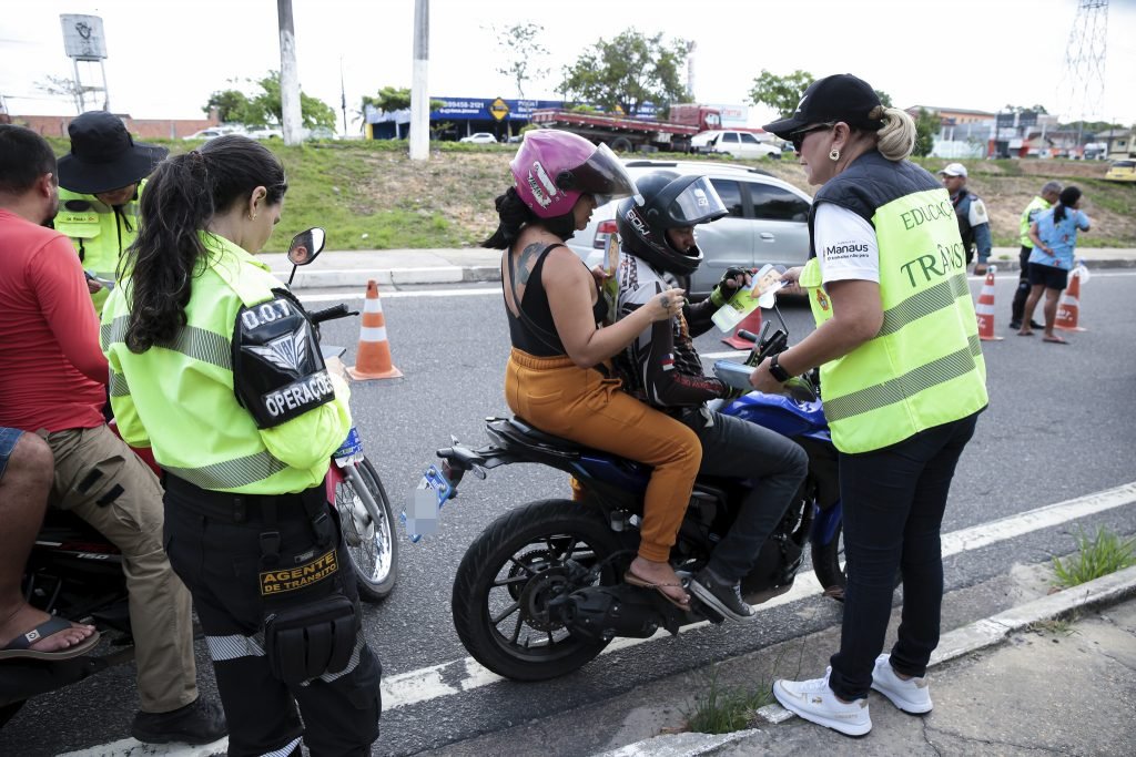 Motoristas e motociclistas que trafegavam pela avenida das Torres, na manhã desta terça-feira (7), foram abordados durante operação integrada da Prefeitura de Manaus, por meio do Instituto Municipal de Mobilidade Urbana (IMMU). Além da fiscalização de documentos e das condições dos veículos, a iniciativa promoveu uma abordagem educativa com orientações sobre segurança e distribuição de materiais informativos para prevenção de acidentes.