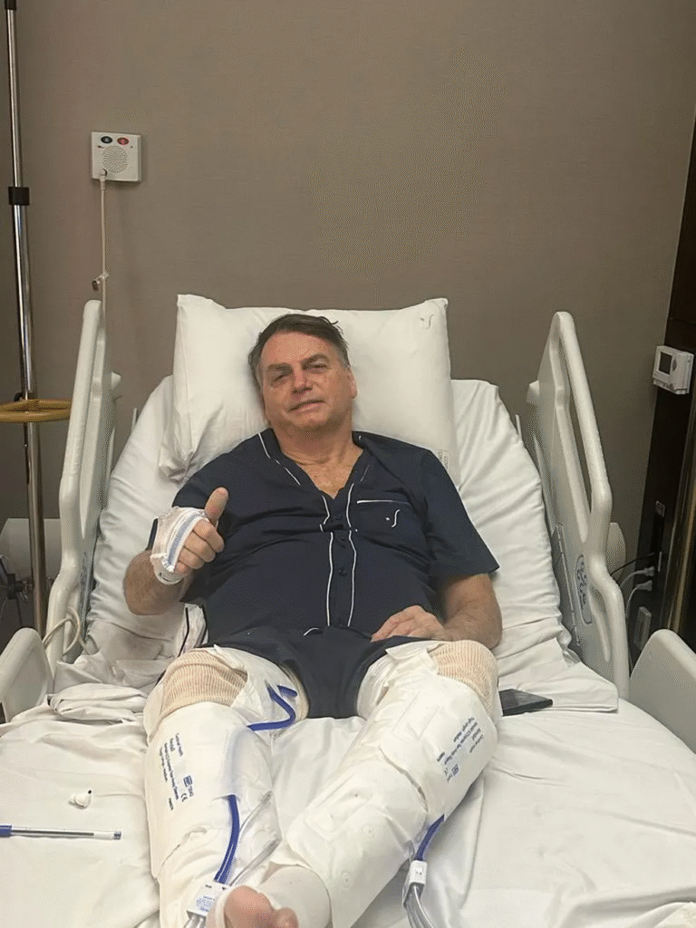 Bolsonaro foi condenado a 27 anos e três meses de prisão por sua participação em um plano golpista para tentar reverter os resultados da eleição de 2022 e, após alta hospitalar, deve voltar a cumprir a prisão na Superintendência da Polícia Federal, em Brasília.