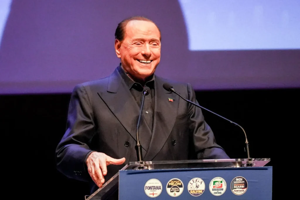 Berlusconi também liderou seu partido Forza Italia, que ele reviveu em 2013 depois de deixar o partido Povo da Liberdade, à vitória com a coalizão de centro-direita com Giorgia Meloni e Matteo Salvini em setembro de 2022, embora não tivesse uma pasta no governo.