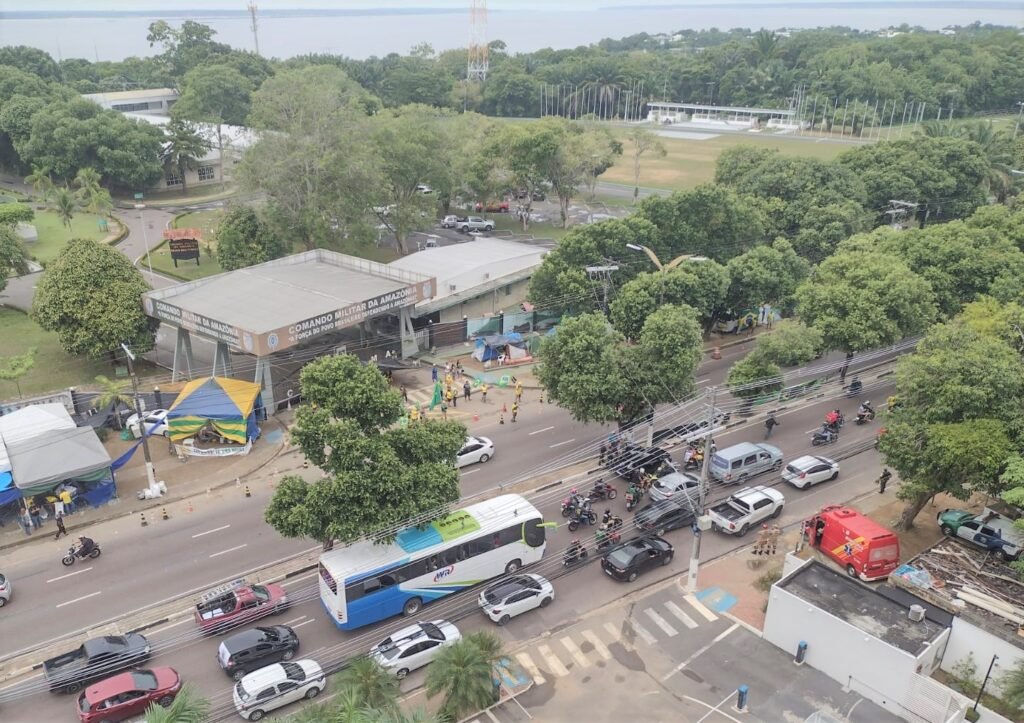 Na Avenida Coronel Teixeira, na Ponta Negra, o cortejo parou em frente ao Comando Militar da Amazônia, onde é realizada uma manifestação, e buzinaram pedindo segurança para os policiais militares que estão no local.
