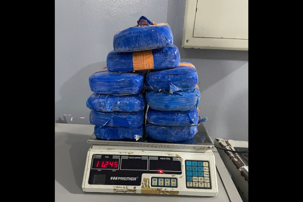 Na delegacia de Polícia Federal, foi realizado o teste preliminar e verificou-se que os 10 tabletes – totalizando 11,25kg  – seriam de substância análoga à pasta base de cocaína.