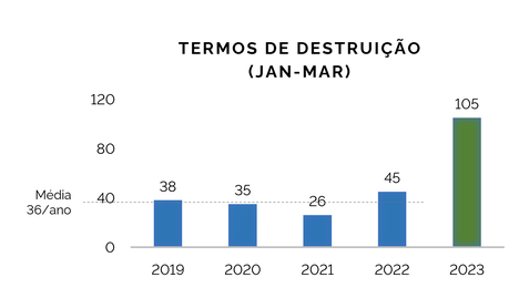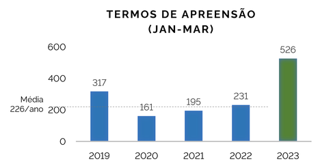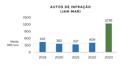 Mesmo com a priorização de operações na região amazônica, as autuações ambientais aumentaram 78% em todo o país na comparação do primeiro trimestre deste ano com a média para o mesmo período nos anos de 2019 a 2022.