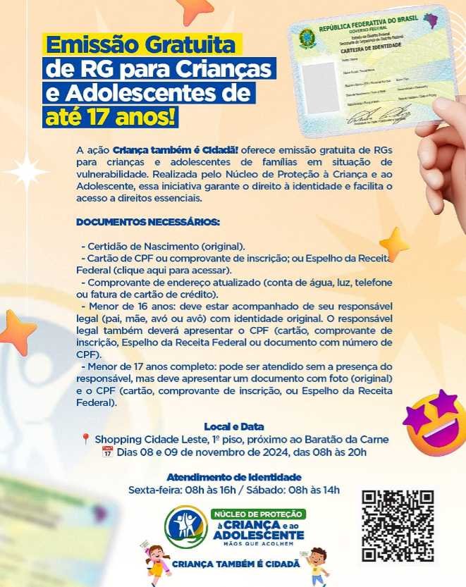 A ação tem como objetivo principal facilitar a emissão gratuita de RG para crianças e adolescentes de 3 a 17 anos, pertencentes a famílias de baixa renda, que possuem acesso limitado aos serviços de documentação.