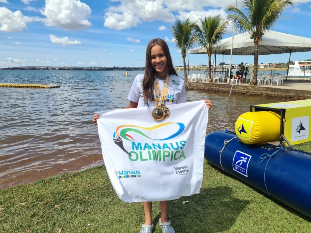 A amazonense Angelynne Victória, de 13 anos, atleta do programa “Manaus Olímpica” da Prefeitura de Manaus sagrou-se campeã nas provas de 5 e 10 quilômetros, na categoria Infantil 1, da 5ª etapa do Campeonato Brasileiro Interclubes de Águas Abertas na última semana, em Brasília (DF).