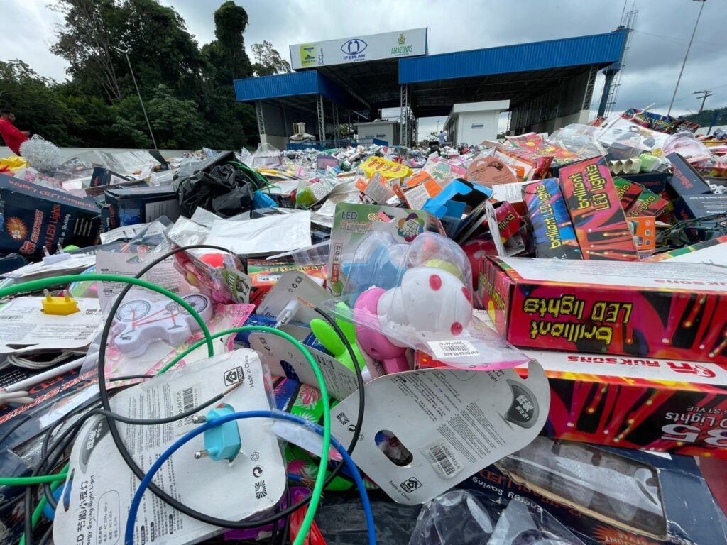 Uma tonelada de produtos foi apreendida durante as fiscalizações realizadas pelo Governo do Amazonas, por meio do Instituto de Pesos e Medidas do Amazonas (Ipem-AM), e foram destruídas por um rolo compressor, nesta quinta-feira (16), no Terminal de Cronotacógrafo do Ipem, localizado na avenida Flamboyant, no Distrito Industrial II, zona sul da capital.