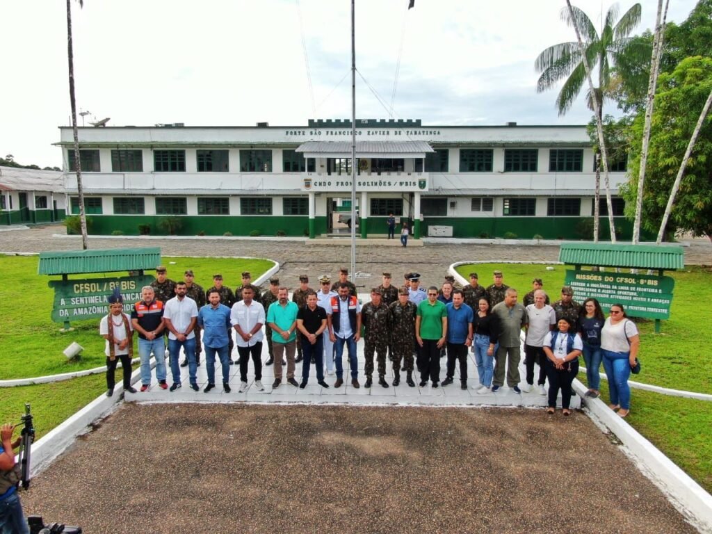 Tabatinga (AM) — O Comando de Fronteira Solimões/8º Batalhão de Infantaria de Selva (CFSol/8º BIS) recebeu a visita do Governador do Amazonas, Wilson Lima, acompanhado dos Prefeitos de Tabatinga, Benjamin Constant e Atalaia do Norte, além de comitiva composta por representantes dos órgãos envolvidos na Operação Estiagem.