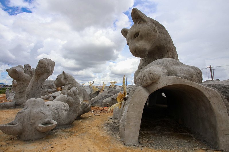 Entre ferros moldados e esculpidos, operários seguem executando os cenários com vários níveis de conclusão e acabamento. A construção terá cenários interativos temáticos, com rampas de escalada, escorregadores, área molhada, entre outros. Todas as figuras ligadas à floresta serão manuseadas, como brinquedos lúdicos para as crianças e interativos para os adultos.
