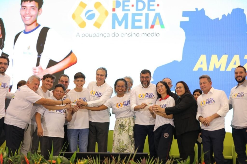 O ministro da Educação, Camilo Santana, e o governador do Amazonas, Wilson Lima (União Brasil), lançaram o programa Pé-de-Meia nesta quarta-feira (27). A solenidade aconteceu no Centro de Convenções Vasco Vasques. Até o momento, 74.577 alunos já estão inscritos no estado – a expectativa é até 105 mil.