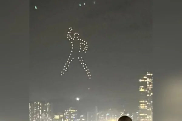 Entre os desenhos formados no céu, os drones fizeram a assinatura de Pelé e o jogador com uma a taça. Um vídeo e fotos da homenagem foram publicados no Instagram da prefeitura de Santos.