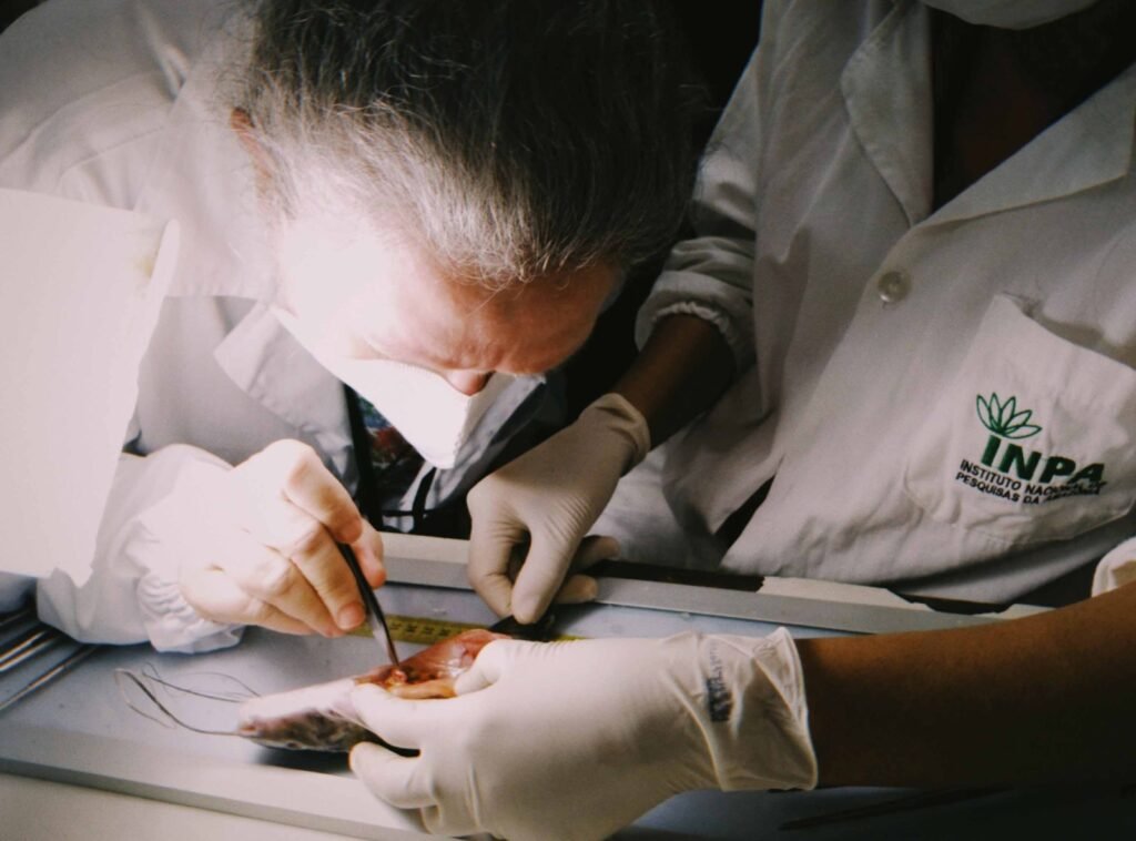 A coordenadora da pesquisa, doutora em Biologia de Água Doce e Pesca Interior, Cristhiana Paula Röpke, do Instituto Nacional de Pesquisas da Amazônia (Inpa), explica que as análises começaram com as coletas mensais de peixes utilizando malhadeiras, previamente instaladas na borda da floresta inundada ou na área do lago por 24 horas. Logo após esse processo, todos os peixes foram armazenados em gelo e levados para o laboratório onde ocorre a posterior identificação e análise das espécies.