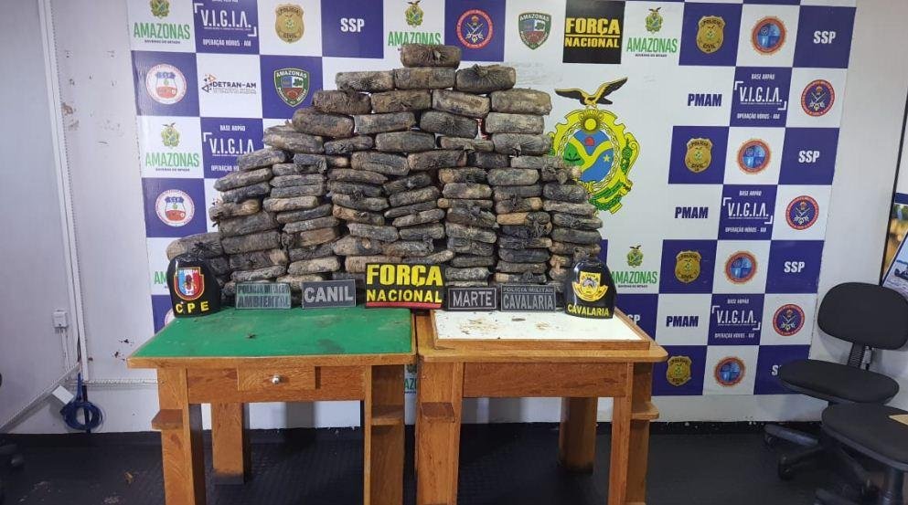 Cento e quarenta e um quilos de maconha foram apreendidos na última sexta-feira (3) por policiais embarcados na Base Fluvial Arpão, baseada no município de Coari, a 363 km de Manaus, no Rio Solimões.