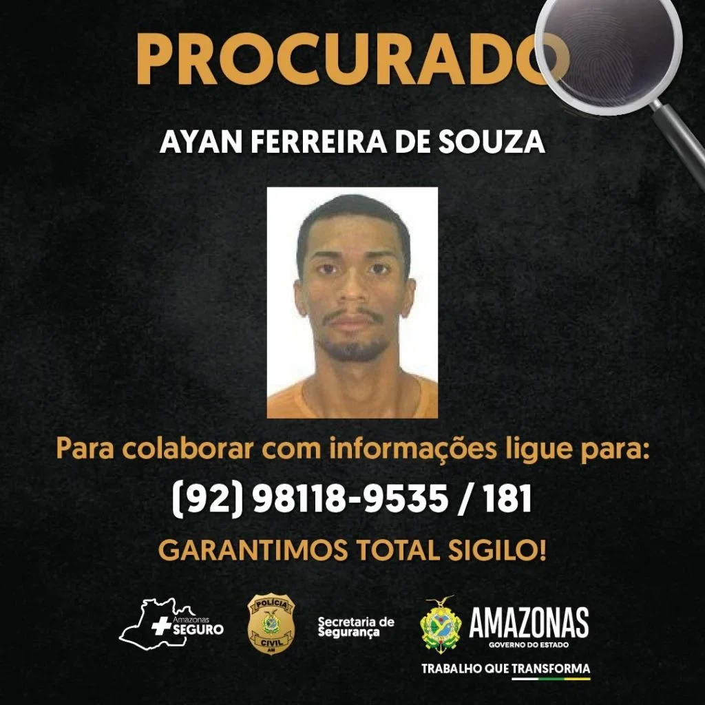 A PC-AM solicita a quem tiver informações sobre o paradeiro de Ayan Ferreira de Souza que entre em contato pelos números (92) 98118-9535, ou pelo 181, da Secretaria de Estado de Segurança Pública (SSP-AM). A identidade do informante será preservada.