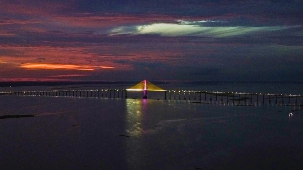 A Ponte Rio Negro, que liga Manaus a municípios da Região Metropolitana da cidade foi iluminada com a cor do Janeiro Roxo, na noite desta sexta-feira (5) como parte da campanha de conscientização contra a Hanseníase realizada em todo o País.