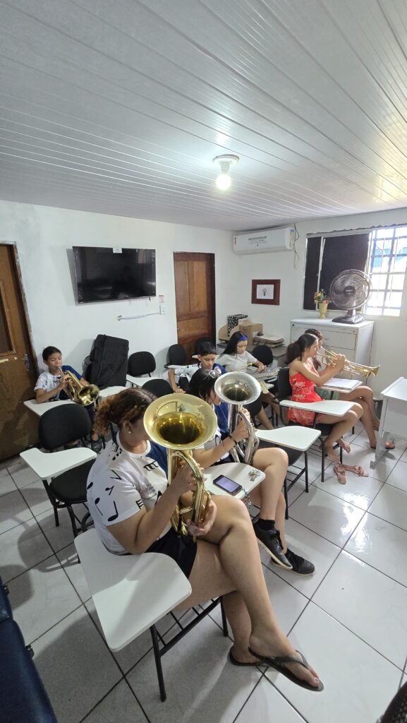 As oficinas de percussão e bio instrumentos integram música e consciência ambiental, utilizando materiais recicláveis e orgânicos. As aulas de capoeira valorizam a cultura afro-brasileira, o movimento e a convivência, enquanto a Escola de Rock estimula a criatividade, a expressão juvenil e o trabalho coletivo. Já as aulas de violão promovem iniciação musical e desenvolvimento artístico.