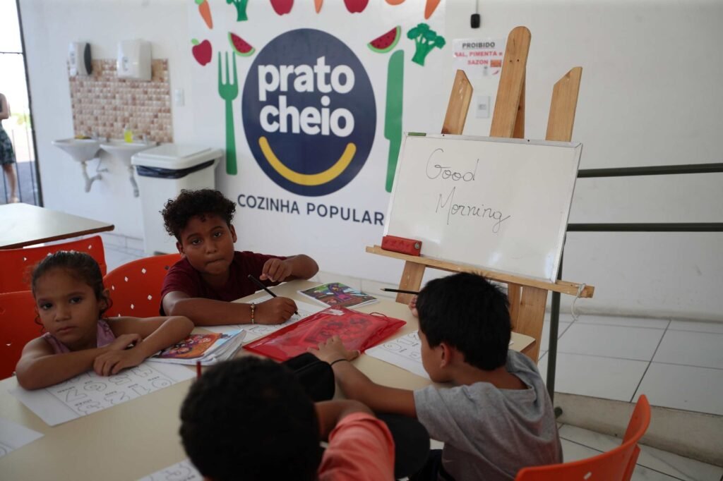 Essa unidade do Prato Cheio no bairro da União foi inaugurada em abril de 2022. Além das aulas de inglês, funciona desde outubro do ano passado, um espaço que oferece um cantinho da leitura e jogos de tabuleiro para os beneficiários.