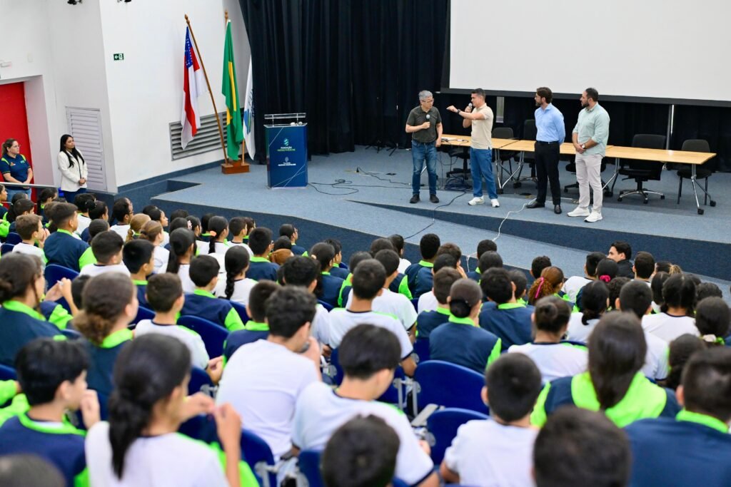 O prefeito de Manaus, David Almeida, participou, nesta sexta-feira (27), da palestra de integração dos 210 alunos da rede municipal que passam a estudar na Fundação Matias Machline, localizada no Distrito Industrial 1, na zona Sul, em razão do convênio firmado com a Prefeitura de Manaus, por meio da Secretaria Municipal de Educação (Semed). A instituição, que completa 40 anos de atuação na capital, oferta pela primeira vez o Ensino Fundamental dentro de uma parceria com o município.